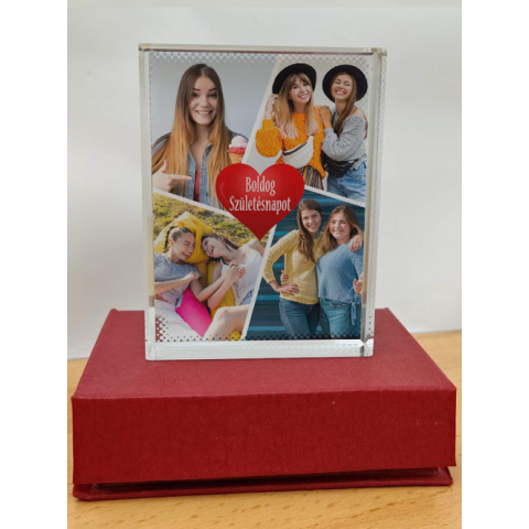 Kollázs fotókristály, boldog szülinapot. Kollázs fényképes kristálytömb születésnapra szüleidnek, barátodnak, testvérednek. Különleges ajándék születésnapra akár nagyszüleidnek is. Egy meglepetés amiről bármikor eszébe jutsz, annak a személynek akinek szá