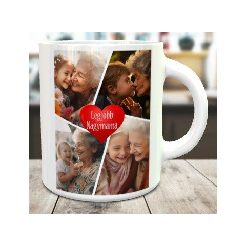 Kollázs fotós bögre, legjobb nagymama. Kollázs fényképes bögre a legjobb Nagymamának. Különleges ajándék nagyszüleid születésnapjára, anyák napjára vagy karácsonyra. Egy meglepetés amiről bármikor eszébe jutsz, ha ránéz. Kerámia vagy zománc bögre, melye