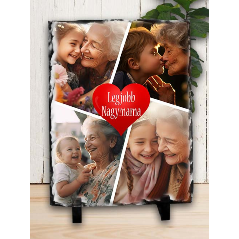 Kollázs fotós kőlap, legjobb nagymama. Kollázs fényképes kőlap a legjobb Nagymamának. Különleges ajándék nagyszüleid születésnapjára, anyák napjára vagy karácsonyra. Egy meglepetés amiről bármikor eszébe jutsz, ha ránéz. Kőlap, melyen egy 4 fotóból álló k