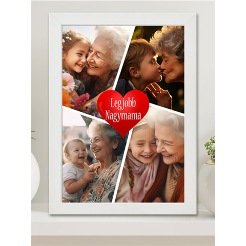 Kollázs fotós nagy falikép, legjobb nagymama. Kollázs fényképes A3 méretű falikép a legjobb Nagymamának. Különleges ajándék nagyszüleid születésnapjára, anyák napjára vagy karácsonyra. Egy meglepetés amiről bármikor eszébe jutsz, ha ránéz. Falikép, melyen