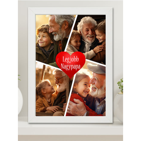 Kollázs fotós nagy falikép, legjobb nagypapa. Kollázs fényképes A3 méretű falikép a legjobb Nagypapának. Különleges ajándék nagyszüleid születésnapjára, anyák napjára vagy karácsonyra. Egy meglepetés amiről bármikor eszébe jutsz, ha ránéz. Falikép, melyen