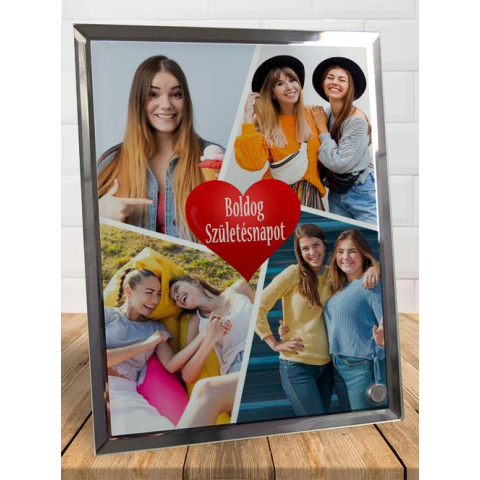 Kollázs fotós üvegfotó, boldog szülinapot. Kollázs fényképes fotóüveg szülinapra szüleidnek, barátodnak, testvérednek. Különleges ajándék születésnapra akár nagyszüleidnek is. Egy meglepetés amiről bármikor eszébe jutsz, annak a személynek akinek szántad,