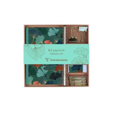 1 kép Kollekció Clairefontaine Gaia kék jegyzetfüzet, ceruza, binder csipesz, kapocs, radír