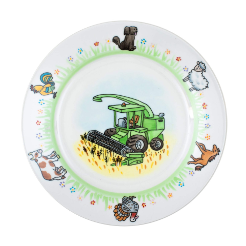 Kombájnos tányérKézzel festett porcelán tányér. mely felirattal névre szólóvá is tehető.A porcelánt festés után 820 fokon égetem ki, mikrohullámú sütőbe betehetők, mosogatógépben tisztíthatók.