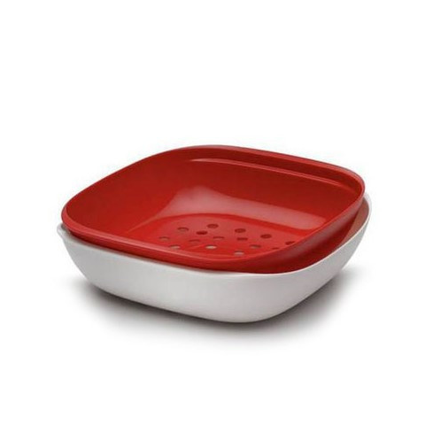 Termékjellemzők: - Tupperware Kombikosár - Szín: piros szűrő és fehér tál - Méret: 24,5 x 24,5 x 7 cm - Gyümölcsök, zöldségek mosására és lecsöpögtetésére, tálalására - Görögdinnye, vagy más nagy nedvességtartalmú ételek szervírozására - Fagyasztott élelm