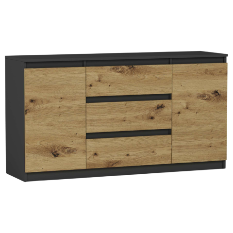 Teljes Komód, 3 fiókos, 2 ajtós, R140-S3, 140x76x40 cm, antracit - artisan sonoma termékleírás