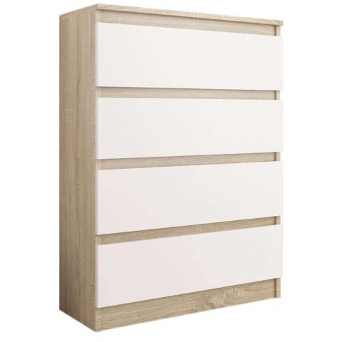Modern 4 Fiókos Komód Sonoma-Mix Színben: Elegáns Tárolás a Hálószobába és Nappaliba Ez a stílusos és modern komód tökéletes választás a rendezett és elegáns otthonért.  Minimalista dizájnjával könnyedén illeszkedik bármely hálószoba vagy nappali ente...