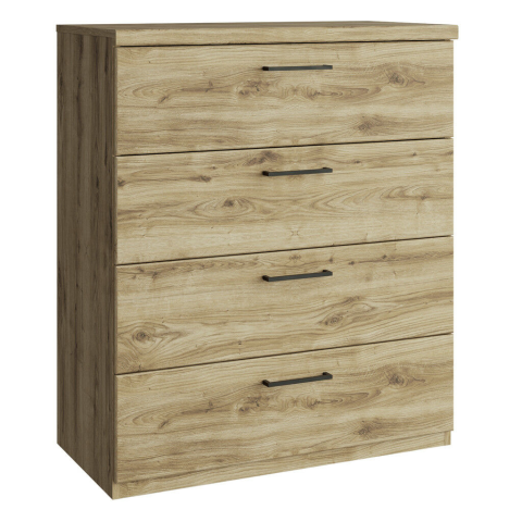 DORSI Komód 4 fiókkal, navarra tölgy színben - Stílus és tárolás egyben! 🏡 A DORSI komód tökéletes választás, ha praktikus és stílusos tárolási megoldást keresel otthonába. A navarra tölgy szín elegáns megjelenést kölcsönöz a bútornak, míg a négy tág...