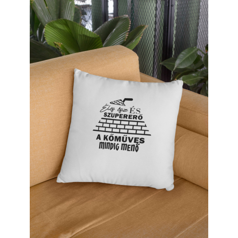 Kőműves mindig menő fehér párna egyedi ajándék 1 kép
