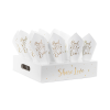 Konfetti kúpos állvány, színkeverék. A készlet 16 darab papírból készült konfetti kúpot tartalmaz, arany felirattal és állvánnyal az összeszereléshez.