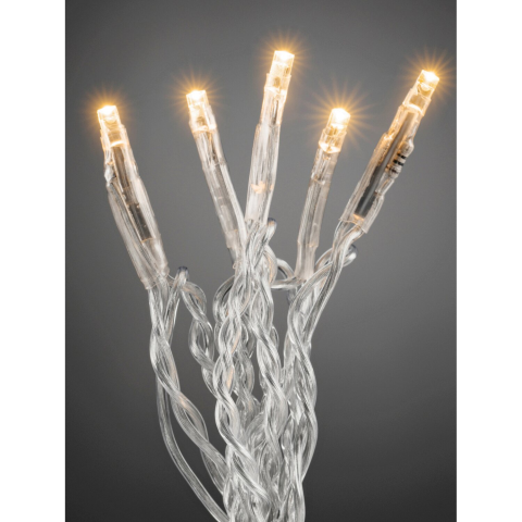 A Micro LED fényfüzér beltéri hangulatos dekorációként alkalmas. Az 100 darab izzó melegfehér (borostyánsárga) színben világít. - Hegesztett - 24 V belső trafó - Átlátszó kábel