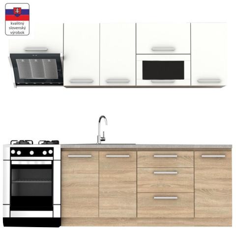 Teljes Konyhabútor 2,4 m, tölgy sonoma/fehér, NOVA PLUS termékleírás