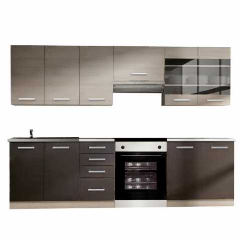 Teljes Konyhabútor, világos szürke tölgyfa/sötét tölgyfa, KLANTON termékleírás