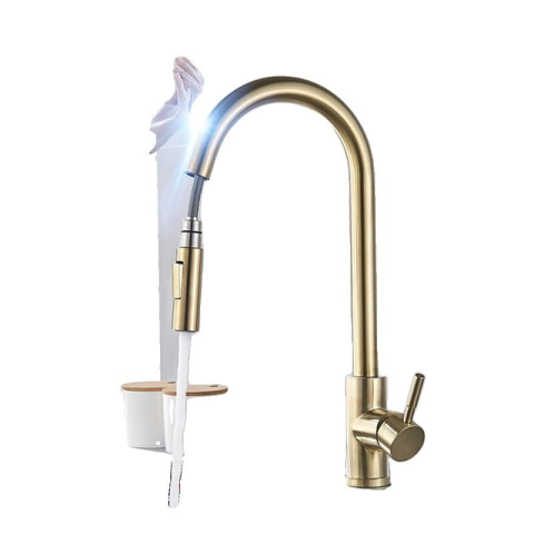 Érintésvezérlésű, kihúzható, szálcsiszolt arany konyhai csaptelep - A modern konyha stílusos és praktikus kiegészítője ✨ Ez a szálcsiszolt arany bevonattal rendelkező, érintésvezérlésű konyhai csaptelep nem csupán egy csap, hanem egy stílusos kiegész...