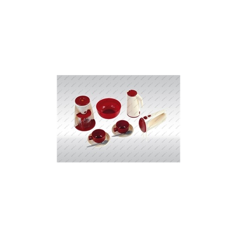 A szett az illusztrált képen látható elemeket tartalmazza. Tökéletes kiegészítoi a gyermek konyháknak, elemeibol elkészítheto illetve tálalható a reggeli kávé, és a délutáni ebéd elkészítésében is segédkezik.