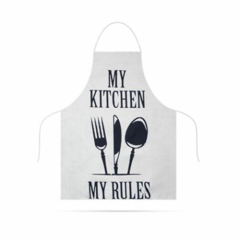 Praktikus kiegészítője a konyhai főzéseknek, kerti sütögetésnek. Megvédi ruháját a zsírfoltoktól, szennyeződésektől. A poliészter anyagnak köszönhetően mosható, vasalható. Hátul megkötős