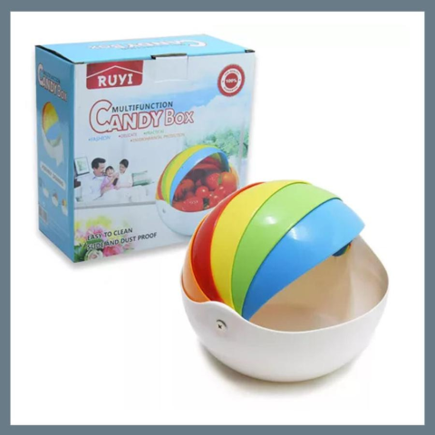 Konyhai nasi tartó edény ráhúzható tetővel – cukorkáknak, magvaknak, nassolnivalóknakA multifunkcionális konyhai cukorka tartó doboz szivárvány színű teteje teljesen hátra hajtható, így kényelmesen csipegetheted belőle a kedvenc nasidat, majd ha végeztél vele egy mozdulattal ráhajthatod a fedelét. A szivárvány színű tároló dobozka a születésnapi zsúrok elengedhetetlen kelléke lesz, színe bármelyik asztalt feldobják, a gyerekek pedig kényelmesen kivehetik be