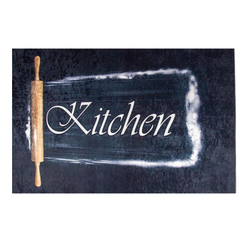 Konyhai Szőnyeg – Kitchen feliratos minta 80x150 Konyhai Szőnyeg – Kitchen feliratos minta 80x150 Ez a letisztult és modern konyhai szőnyeg elegáns megjelenésével feldobja bármely konyha hangulatát. A „Kitchen” felirat és a sodrófát ábrázoló grafika e