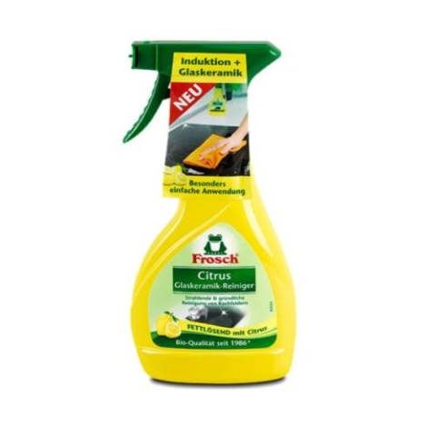 A Frosch főzőlap tisztító spray hatékonyan tisztítja az indukciós vagy üvegkerámia főzőlapokat. Citromkivonatot tartalmazó formulája a hatékony tisztítás mellett kellemes illatot biztosít.