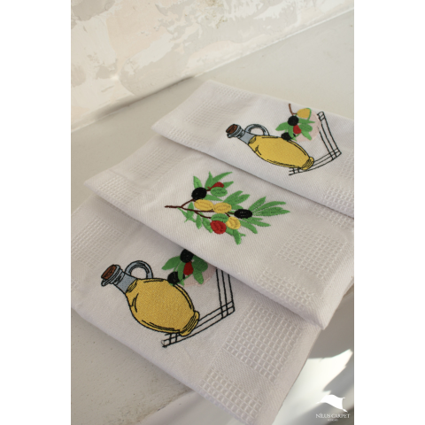 Olivás 3db konyharuha szett 50x70cm Anyaga: 100% pamut Frissesség és stílus a konyhádban Hozz egy csipetnyi napsütést és vidámságot konyhádba ezzel a gyönyörű, 50x70 cm-es citrommintás konyharuhával! Tökéletesen ötvözi a funkcionalit