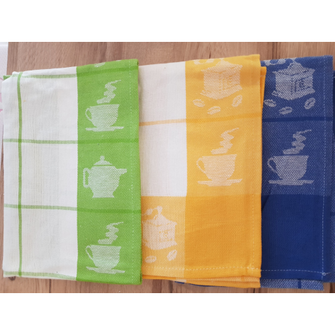 A reggeli ébredés, a kávé mellett a második legnépszerűbb kelléke. Rend a lelke mindennek. Jó nedvszívó kellemes tapintású. A csomag tartalmaz egy napsárga ,egy zöld, egy kék színű szőtt konyharuhát. Csomag váaárlással spórolsz az áron és olcsóbban kapod