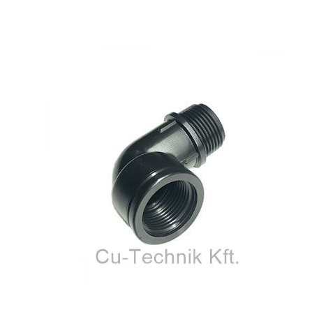 Könyök 3/4 külső-belső menettel Egyik oldalán 3/4 belső menet, másik oldalán 3/4 külső menetes könyök, idomok, mágnesszelepek bekötéshez. A hozzá csatlakoztatott meneteket mindenképpen szükséges tömíteni teflonszalaggal, vagy teflonzsinórral.