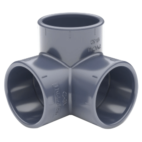 Minimális helyigényű megoldás sarokban szerelt csövekhez. Minimális helyigényű megoldás sarokb 3 ágú könyök - 90º Kiváló minőségű, ragasztható, könnyű PVC-U könyök idom, 3 utas. Minimális helyigényű megoldás sarokban szerelt csövekhez. Hosszú élettarta
