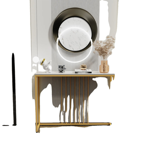 Konzolasztal, márvány teteje, arany fém keret, fekete bútor termékleírás