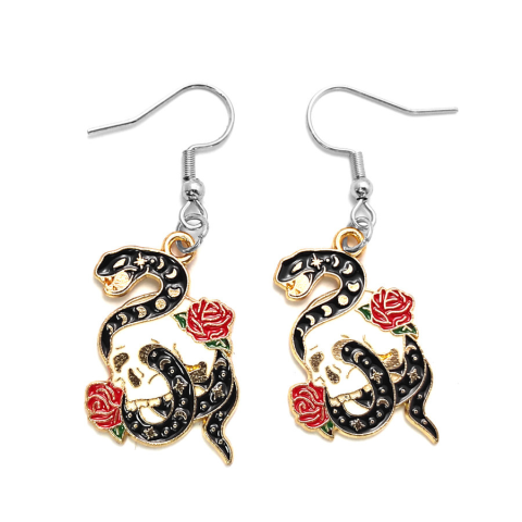Koponyás-kígyós fülbevaló ezüst színű akasztóval fülbevaló 1 kép