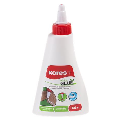 Hobbiragasztó, 125 ml, KORES White Glue -fehér PVA alapú hobbiragasztó -adagolós kupak -tiszta és könnyű használat -egyenetlen felületekre is alkalmas -ideális hobbi és kreatív tevékenységekhez -száradási idő: 2 perc -vízzel mosható -oldószermen