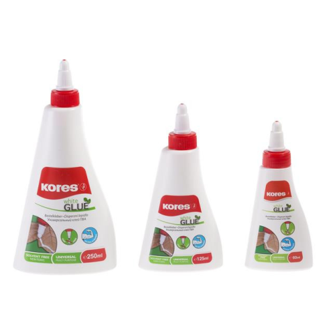 Hobbiragasztó, 60 ml, KORES White Glue - fehér PVA alapú hobbiragasztó - adagolós kupak - tiszta és könnyű használat - egyenetlen felületekre is alkalmas - ideális hobbi és kreatív tevékenységekhez - száradási idő: 2 perc - vízzel mosható - oldószermen