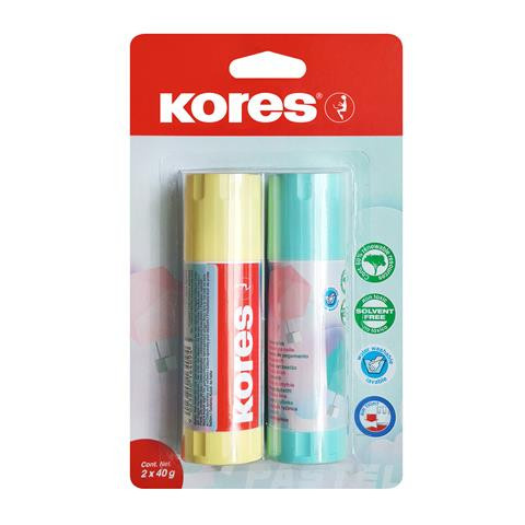 Ragasztóstift, pasztell színű tokban, 2x40 g, KORES, vegyes színek A KORES hobbitevékenységek egyik legjobb barátja, ha ragasztásról vagy színezésről van szó. -erős ragasztást biztosít -oldószermentes -biztonságosan, légmentesen záró kupak -hozzá