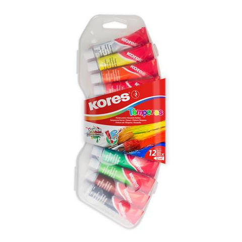 Tempera készlet, 12 ml, KORES, 12 különböző szín -ideális iskolai, kreatív és művész tevékenységhez egyaránt -könnyen vegyíthető színek -festékkeverőként funkcionáló tető -használható papíron, kartonon, festővásznon Itt megtekinthető és letölthet