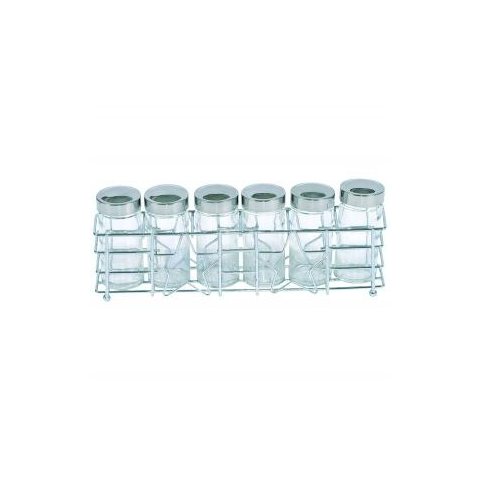 Üveg fûszertartó szett 6 részes állvánnyal 31100010 - Anyaga: üveg, rozsdamentes acél - Rozsdamentes acél állvány - 6 db üveg -  A termék teljes mérete: 11x28 cm