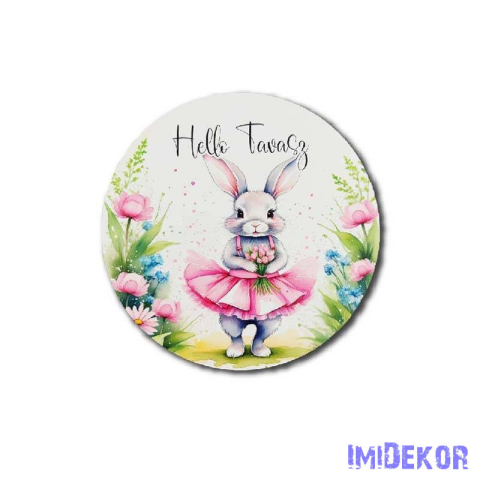 Korong 13cm - Rózsaszín ruhás nyuszi dekorációs kellék 1 kép