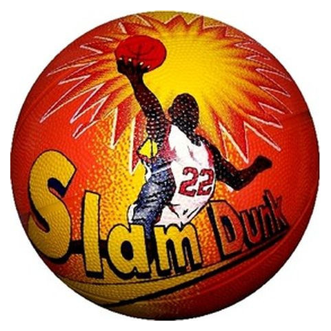 Kosárlabda Slam Dunk feliratú kosárlabda - narancssárga 5-ös méret! Kosarazzatok Slam Dunk feliratú narancssárga labdával! A narancssárga Slam Dunk feliratú kosárlabda egy kosárlabdázóval van díszítve díszítve A kosárlabda rücskös felületű, a labdával