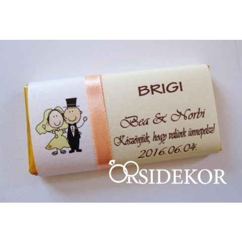 A köszönetajándék csoki személyes jegyekkel való felruházása mégjobban az esküvőhöz köti ezt a kis figyelmességet. A szalag színét és anyagát, a papír minőségét a legördülő menüből tudjátok kiválasztani. A szalag színét, a neveteket, a dátumot és a kös