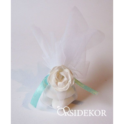 Cukrozott mandula fehér tüllbe csomagolva, kis virággal díszítve - figyelmesség az esküvői násznép számára. A legelterjedtebb édesség mint köszönetajándék, a kezdetektől fogva népszerű és szimbolikus jelentéssel bír: A mandula enyhén kesernyés íze és a k