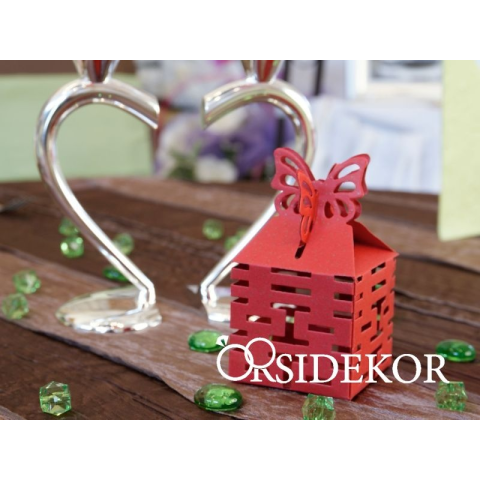 Tedd különlegessé az esküvődet egy felejthetetlen és egyedi köszönőajándékkal! Bordó köszönetajándék-doboz áttört pillangómintával. A doboz különösen alkalmasa mindenféle élelmiszer-jellegű ajándék (cukrozott mandula, cukorka, csokiszív stb.) csomagolás