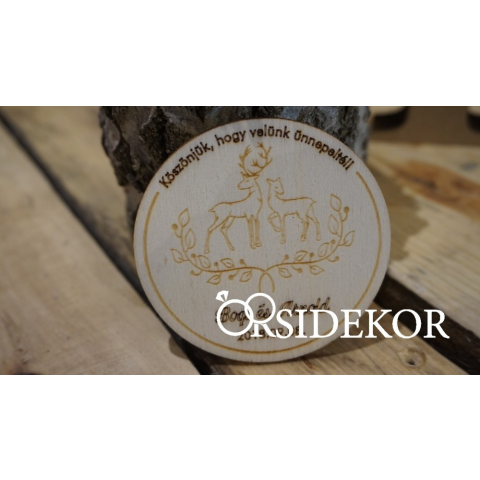 A hűtőmágnes a legjobb választás, hogy kifejezzétek hálátokat a vendégeknek. Nem csak szép, de később is az otthonok méltó dísze lehet. Fából készül, ezért időtálló, még az évek múlásával sem törik és kopik el. Ez a szarvasos grafikával ellátott fa mágne