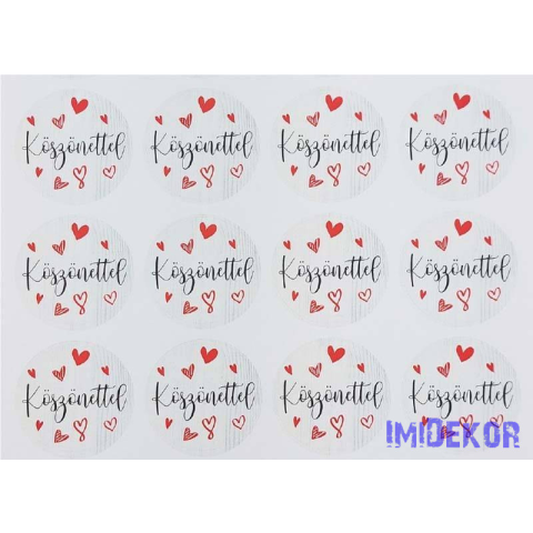 1 kép Köszönettel matrica 24db/A4 lap - Sok szivecskés