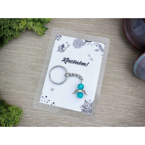 Köszönöm pávakék angyal medálos kulcstartó
