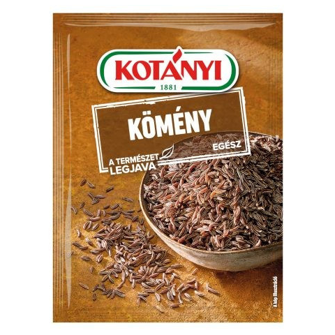 A kömény komplex, meleg ízű és összetéveszthetetlen aromájú fűszer. Erőteljes, karakteres íze az esszenciális olajtartalmának köszönhető. A Kotányi egész kömény a világ számos konyhájának elengedhetetlen fűszere. 25 db/karton Összetétel: köménymag Tár