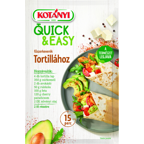 Páratlanul finom íz alig néhány hozzávalóból, 15 perc alatt: Végre itt a csirkés tortillához készült Quick&Easy fűszerkeverék, amely a 'mit főzzek ma' problémádat azonnal megoldja. Összetevők: paradicsompehely (paradicsomsűrítmény, kukoricakeményítő),