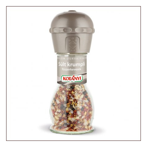 A Kotányi Sült krumpli fűszermalommal nemcsak a sült krumplit fűszerezhetjük, hanem a tepsis burgonyát és más burgonyás ételt is. A termék gluténtartalmú gabonaféléket, tojást, tejet (laktóz), zellert, szóját, mustárt és szezámmagot is felhasználó gyá