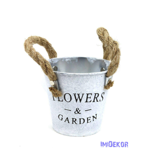 Kötél füles bádog kaspó matt fehér 10,5cm dekorációs kellék árgrafikon