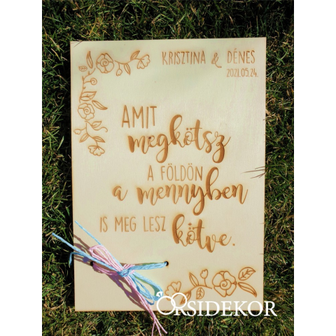 A legújabb esküvői szertartás trend, a kötélceremónia. A Kötélceremónia fa tábla színes kötelekkel az esküvők meghitt és szimbolikus kiegészítője. A lézervágott fa tábla és a hozzá tartozó színes kötelek az összetartozás jelk