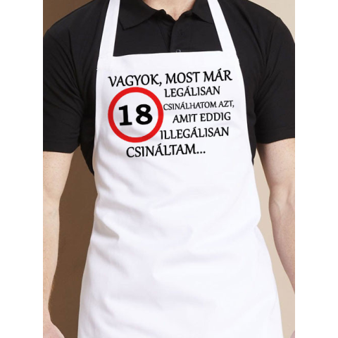 Kötény 18. szülinapra, születésnapi ajándék. 18 vagyok, mostmár legálisan csinálhatom, amit eddig illegálisan csináltam humoros feliratos kötény nagykorú szülinaposnak. Fiúknak és lányoknak is tökéletes választás. Anyaga vászon. Egyedi mintával ellátot