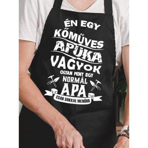 Kötény apáknak, kőműves apuka. Én egy kőműves apuka vagyok, olyan mint egy normál apa csak sokkal menőbb, szakmás kötény Édesapáknak. Ajándék ami Apák napjára, születésnapra, névnapra is tökéletes választás. A kötény fekete vagy fehér színben választható.