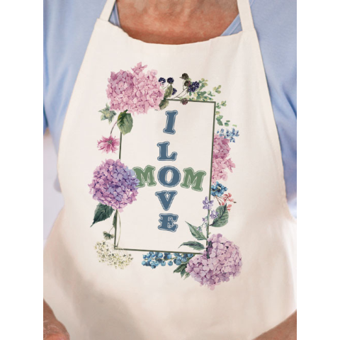 Kötény édesanyáknak, I love mom. Szerezz örömet édesanyádnak egy ilyen feliratos köténnyel, ami tökéletes választás névnapra, szülinapra vagy anyák napjára is. Gyönyörű grafikával, virágokkal ami minden édesanya kedvence. Anyaga vászon. Méret: 70 x 79 cm